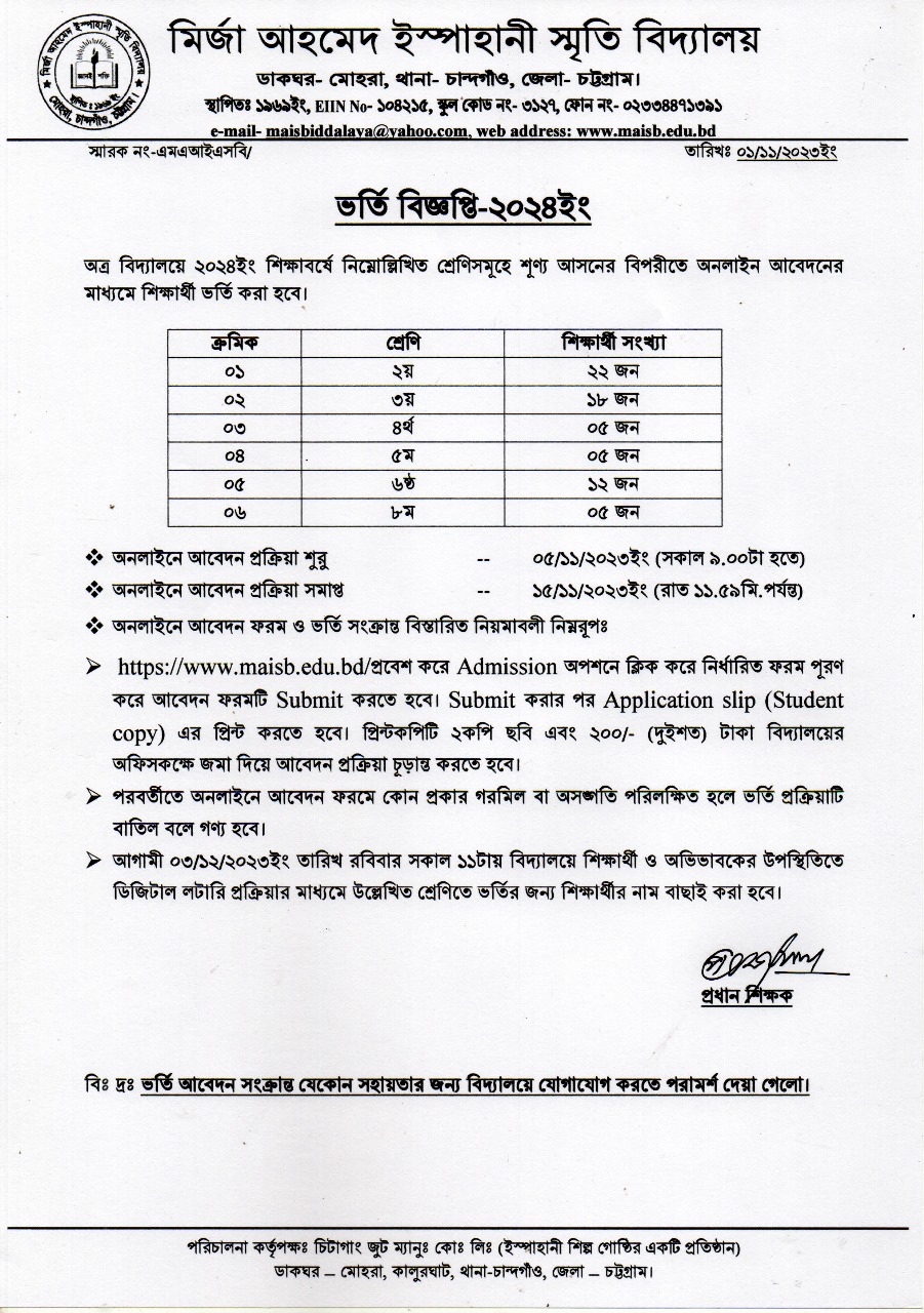 অনলাইন ভর্তি বিজ্ঞপ্তি - ২০২৪ইং |
